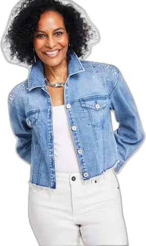 I.N.C. INTERNATIONAL CONCEPTS Women's Embellished Denim Trucker Jacket Light Indigo S
